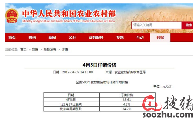 而同时4月9日通过对全国500个农村集贸市场仔猪价格的调查,发现仔猪比去年同比增涨34.7%。达到了每公斤35.61元。仔猪价格的不断升高,更是加剧了想复养而面临的资金压力,再加上非洲猪瘟的影响,养殖户不敢再贸然复养,造成了北方缺猪的严重现象。
