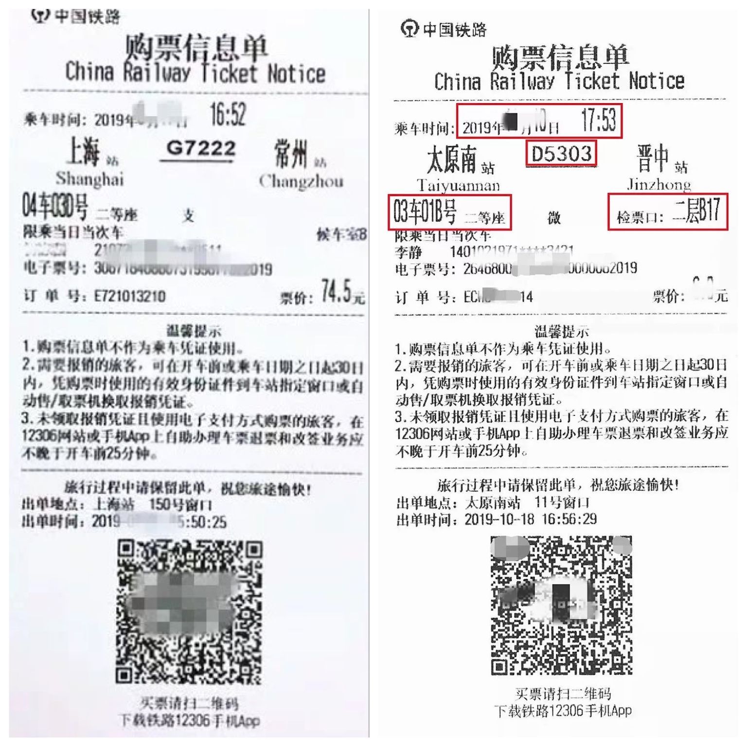 旅行党提问:车次、席位在哪里?