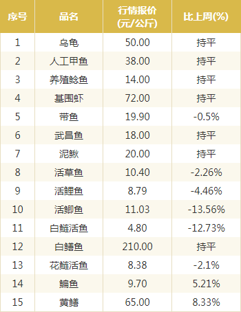 12月27日水产品类行情报价 2019-12-27 17:22 0 声明:以上报价信息由湖北垄上行信息科技有限公司根据武汉白沙洲农产品批发大市场、潜江四季友农产品批发市场、湖北浠水农产品批发市场综合整理,可能与各地实际情况有所出入,仅供参考。转载请注明来源。
