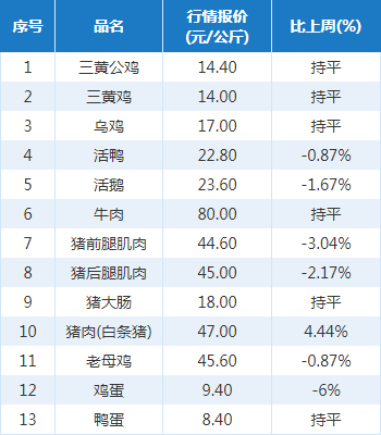 12月27日畜禽品类行情报价 2019-12-27 17:23 0 声明:以上报价信息由湖北垄上行信息科技有限公司根据潜江四季友农产品批发市场、湖北浠水农产品批发市场综合整理,可能与各地实际情况有所出入,仅供参考。转载请注明来源。