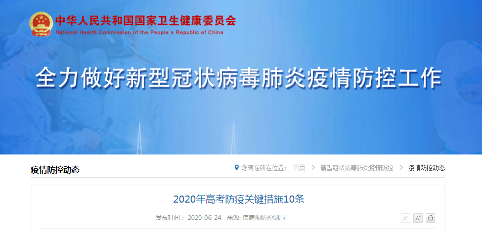 《2020年高考防疫关键措施10条》