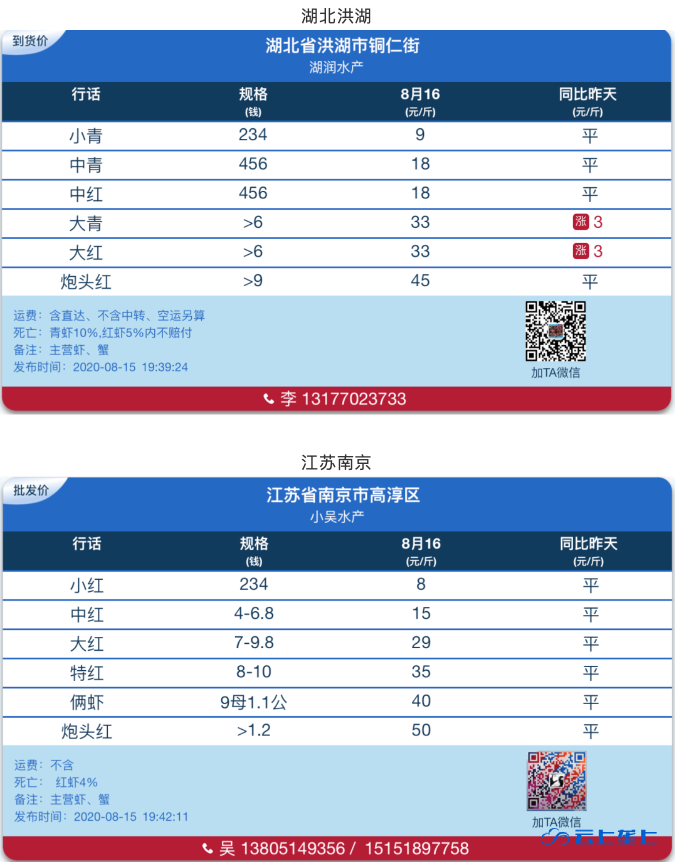说明:垄上水产报价数据来源“小龙虾螃蟹价格”微信公众号,经授权发布。更多地区价格请点此处查看。