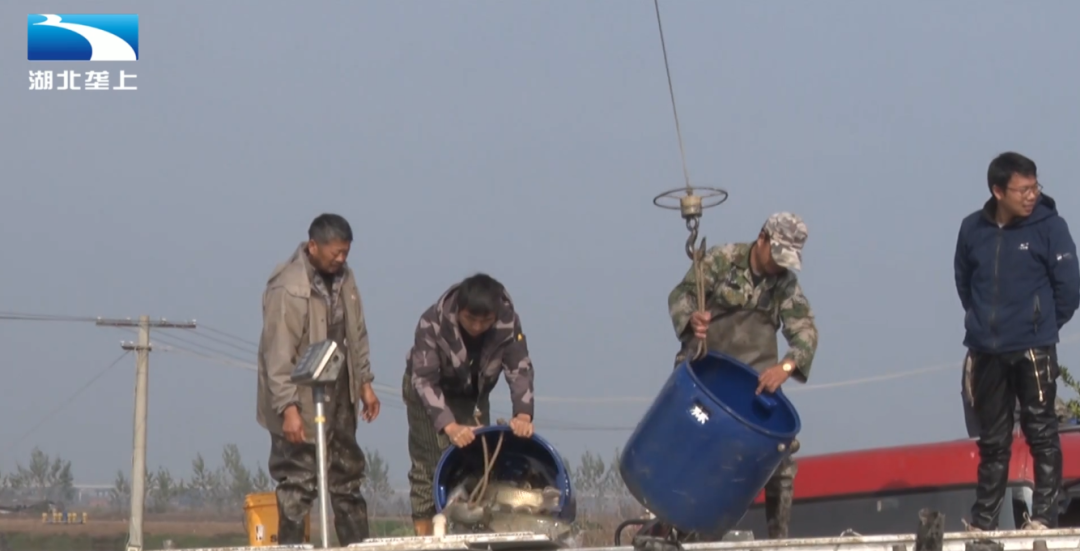 洪湖市大沙湖管理区二分场养殖户 黄小东:“我预计今天要出10万斤鱼,能卖50多万,(全部卖完)估计能卖70万左右。”