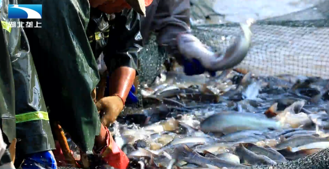 采访当天,在荆州洪湖市大沙湖管理区二分场,渔民们正忙着拉网,随着渔网慢慢被收紧,一条条活蹦乱跳的大鱼渐渐浮出水面,大家伙儿齐心协力,将打捞的鱼一一抬上岸来。