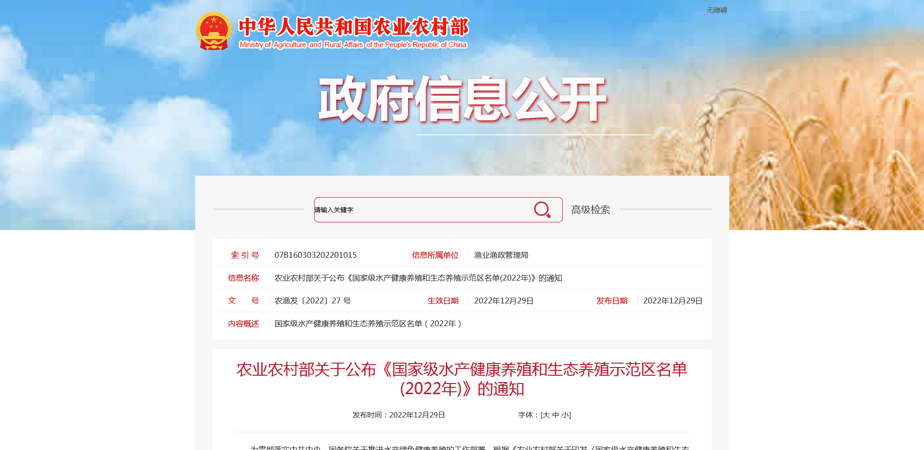 12月29日,农业农村部公布2022年国家级水产健康养殖和生态养殖示范区名单(以下简称“名单”),25个省(区、市)的115个申报主体符合创建标准,其中包括31个县级人民政府主体和84个生产经营单位主体,示范区面积总计约1250万亩,可供给水产品产量约375万吨。