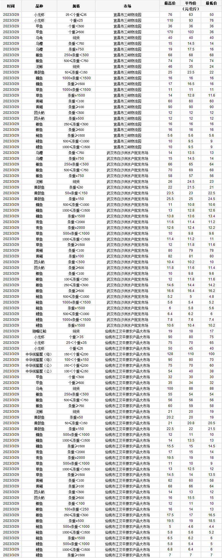 2023年3月28日 行情|湖北省主要水产品价格明细