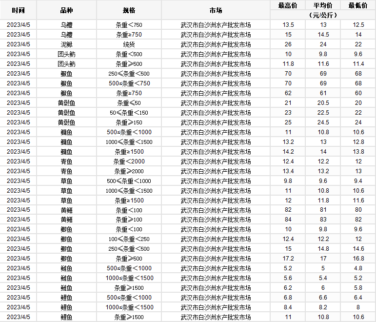 2023年4月5日 行情|湖北省主要水产品价格明细