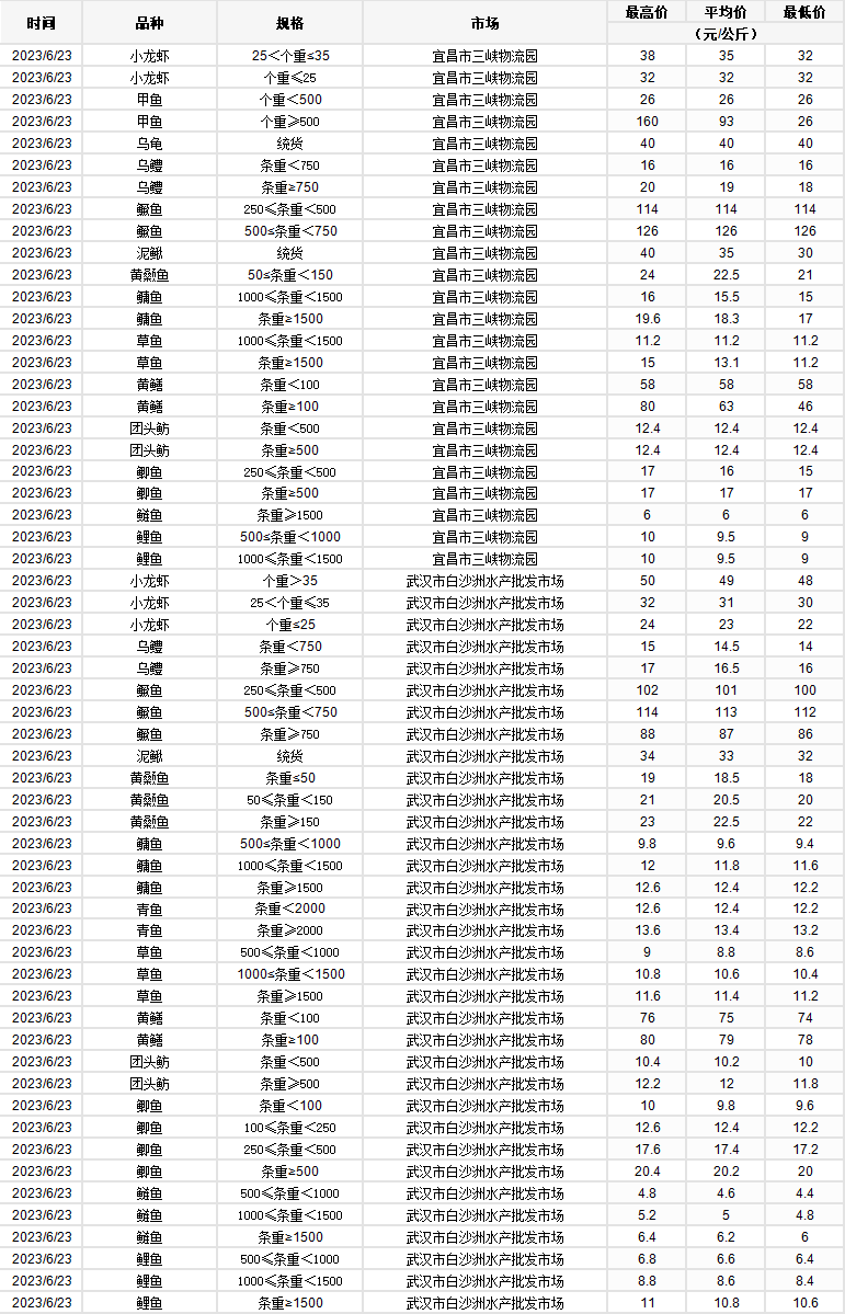 2023年6月23日 行情|湖北省主要水产品价格明细