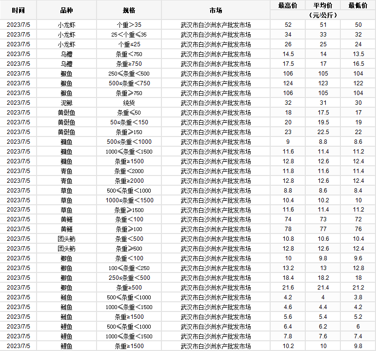 2023年7月5日 行情|湖北省主要水产品价格明细