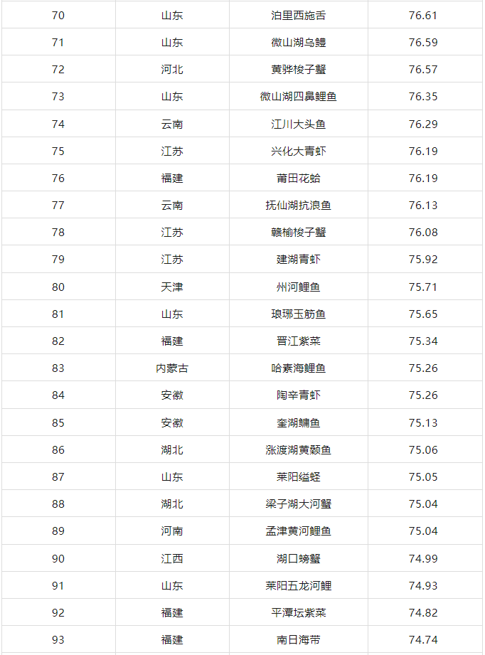 2022中国地理标志农产品(水产)品牌声誉前100位