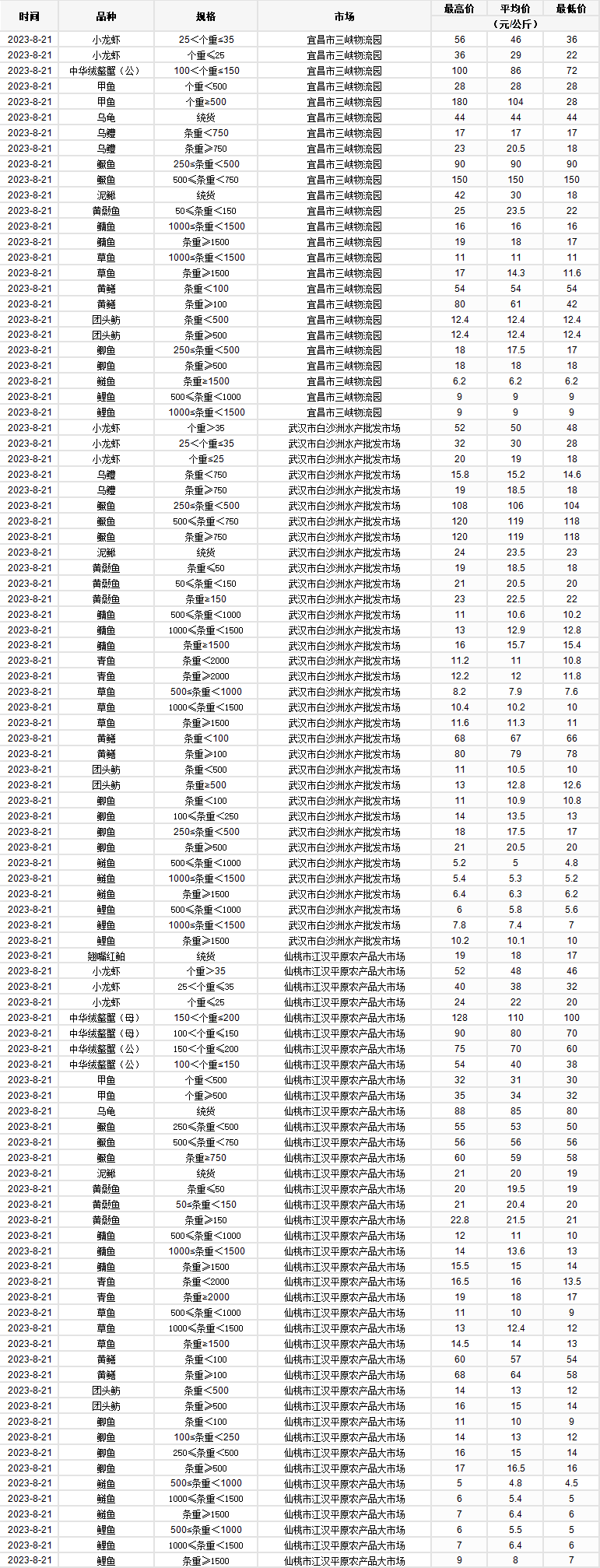 2023年8月21日 行情|湖北省主要水产品价格明细