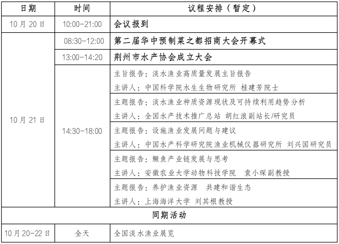 会议邀请农业农村部渔业渔政局、中国水产科学研究院、全国水产技术推广总站 中国水产学会、湖北省人民政府、湖北省农业农村厅及各有关省地市政府领导到会指导。