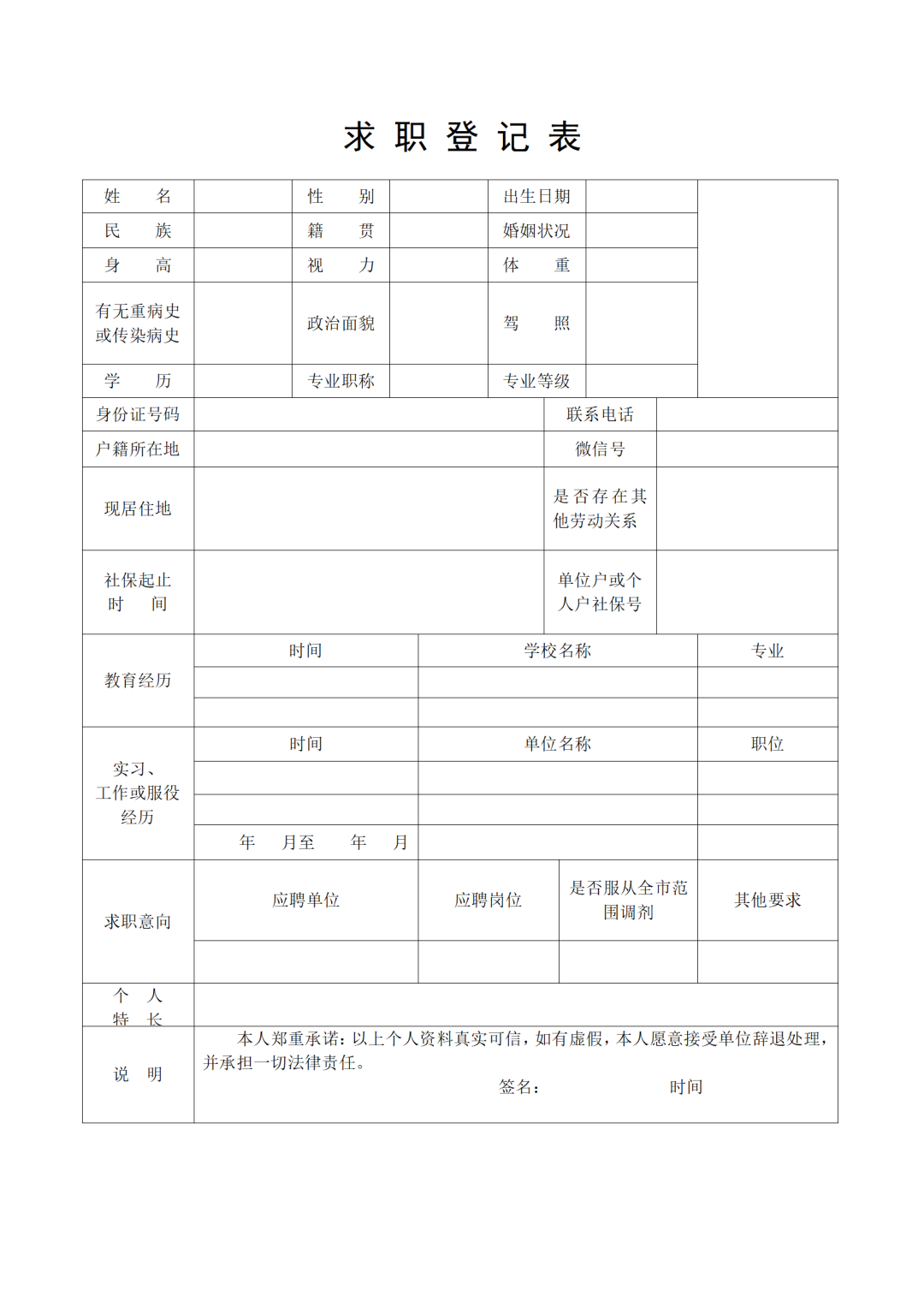 3.报名须知:持本人身份证、户口薄、退伍证、驾驶证、征信查询记录、无犯罪证明、学历证书和相关技能证书等原件及上述材料的复印件1份、近期免冠一寸蓝底免冠彩照2张,自带求职登记表。