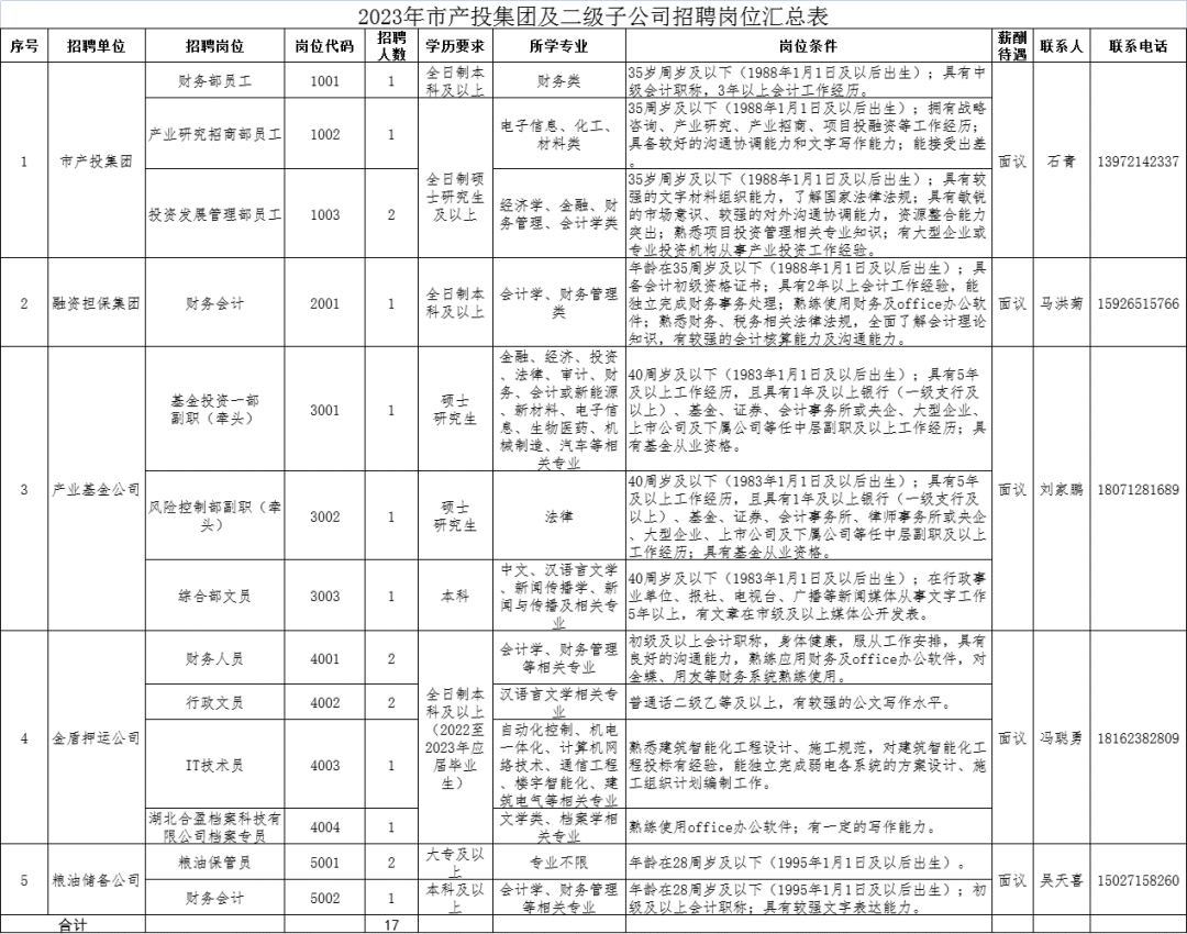 荆州市产业投资发展集团有限公司招聘17人