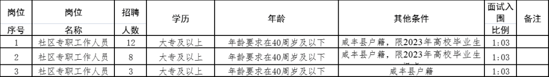 恩施咸丰县户籍人员(本公告发布前取得咸丰县户籍),因高校录取将原咸丰县户籍迁移外地的2023年应届毕业生不受户籍限制;岗位1、2,仅限2023年高校毕业生报考