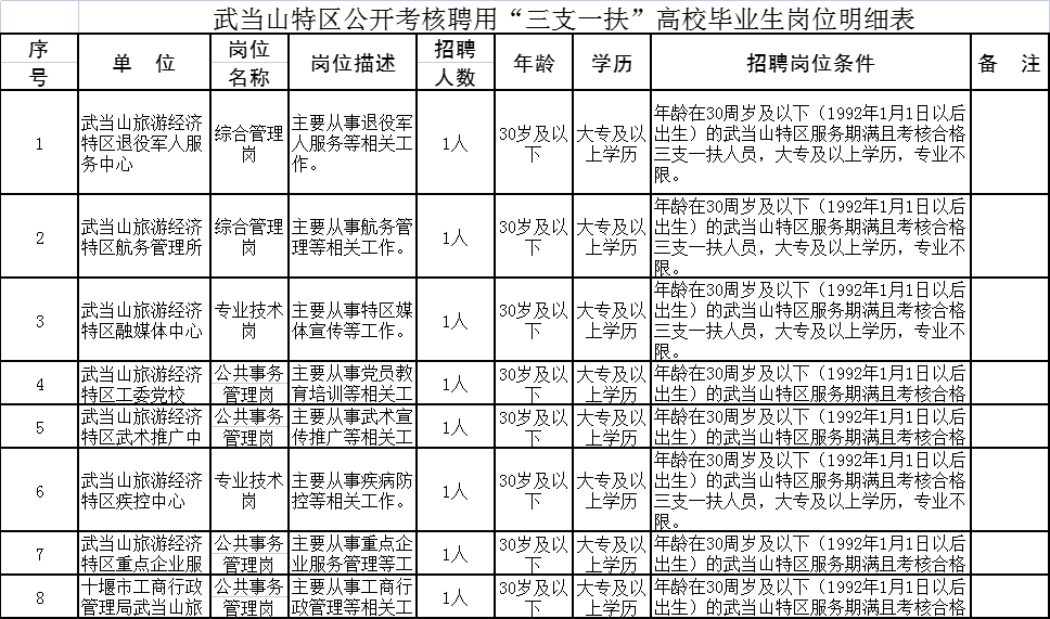 2021年招募的武当山特区“三支一扶”服务期满且考核合格及以上的高校毕业生