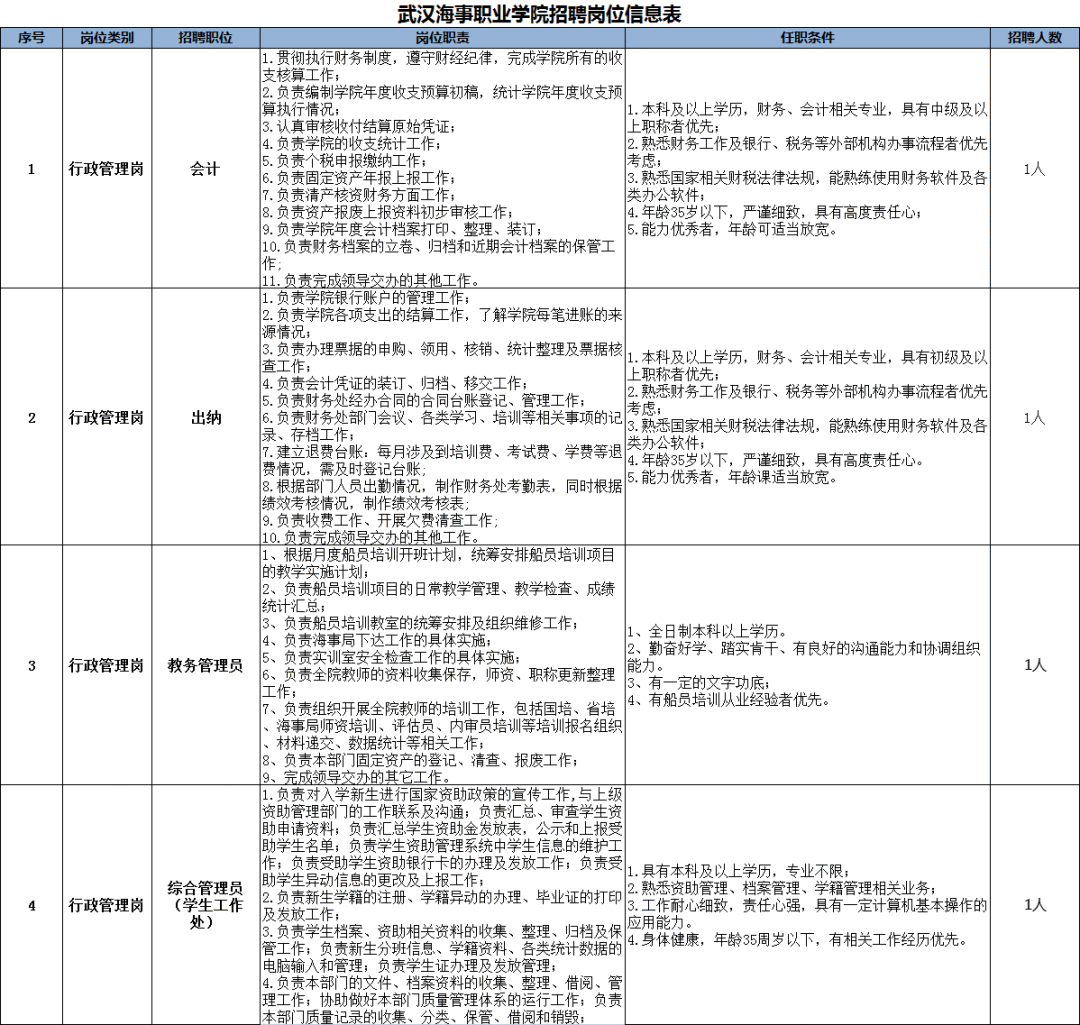 武汉海事职业学院招聘4人