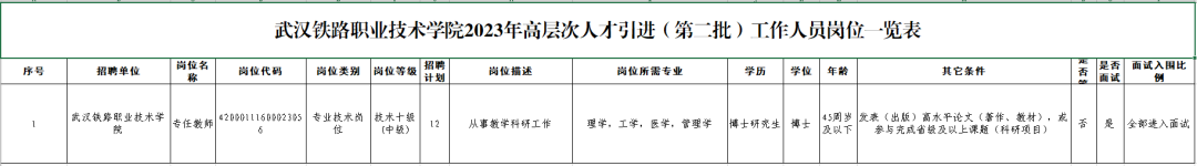 武汉铁路职业技术学院引进高层次人才12人