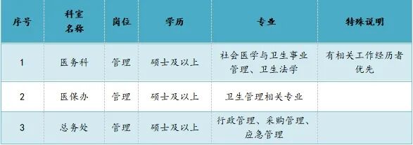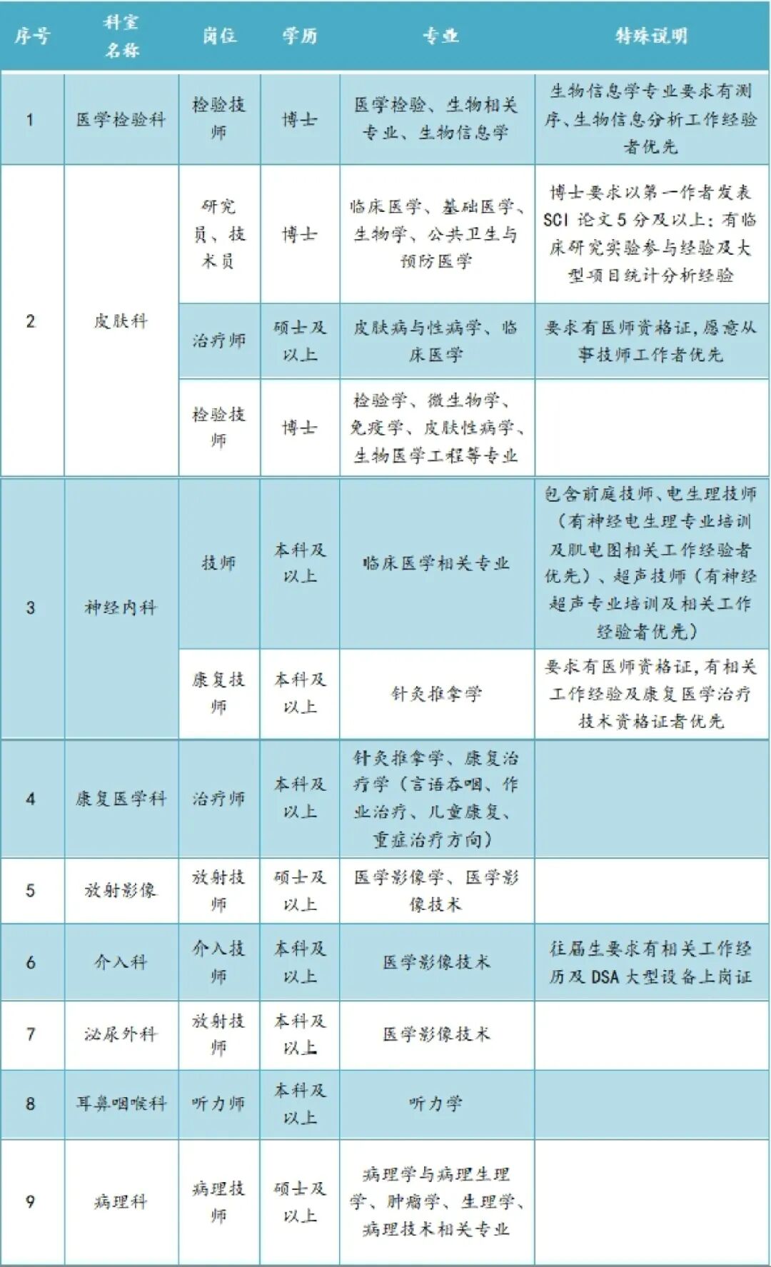 3、优先录用博士、具备三甲医院相关工作经历者,临床8年制博士可不受专业限制,应聘各科室;