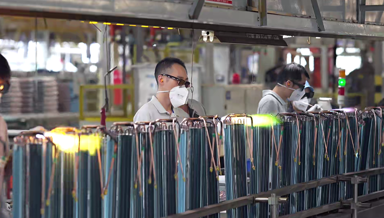 “创客”精神助推企业转型升级。跟随镜头走进空调互联工厂,迎面是一块电子显示大屏幕,只见“数字孪生”的各条产线立体化呈现在上面,当日计划、生产节拍、生产能耗等数据也一目了然。“这是我们的数据运营中心,通过大数据监控效率、安全、质量等生产指标,来保证订单交付。”企业相关负责人介绍到。技能人才不只是生产者,还是创造者、创新者,通过创新破解技能技术难题,推动企业转型升级。在忙碌的生产线中间,有一条“创客大道”,每个工位都是以工人名字命名,甚至有用员工名字命名的生产线,这是鼓励员工的自主改善精神,通过创新、创造,改善生产流程,提升产品质量。