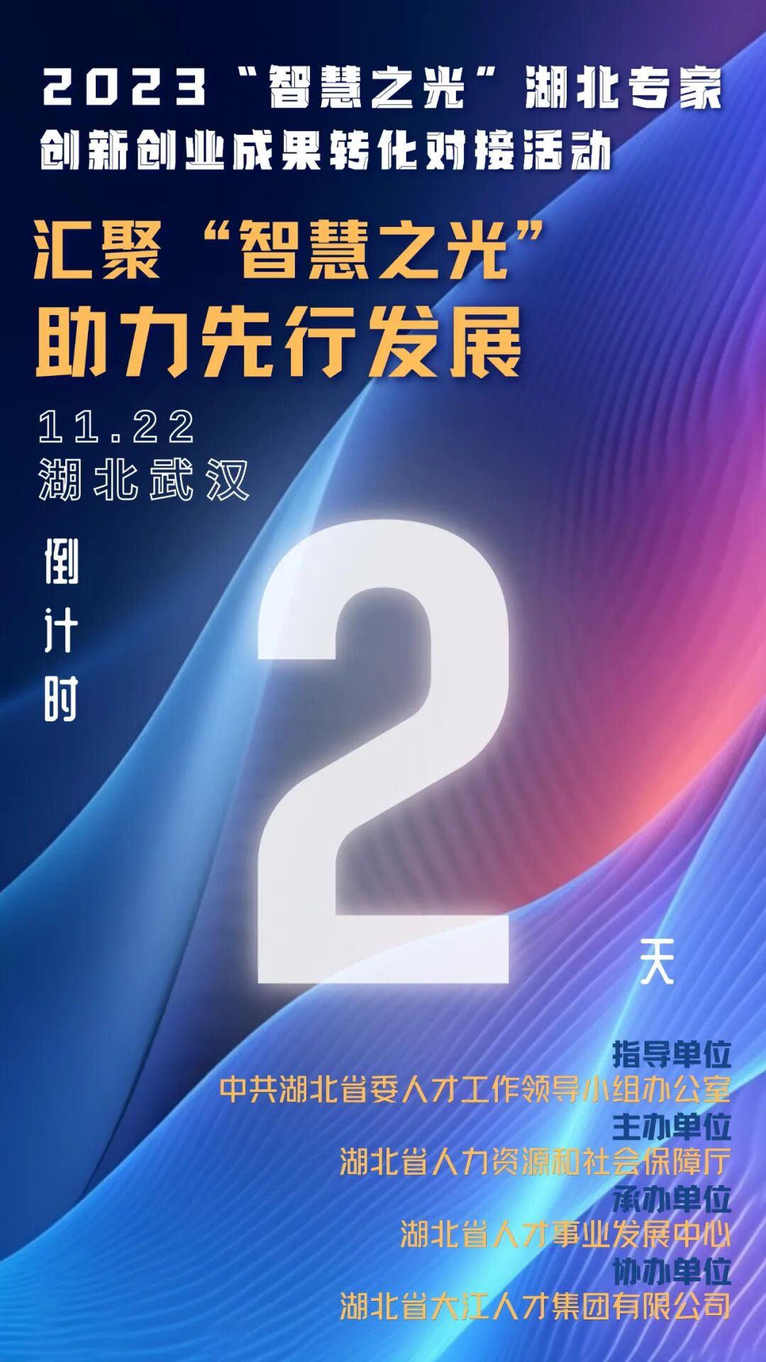 倒计时2天!2023“智慧之光”湖北专家创新创业成果转化对接活动即将开幕! 2023-11-20 21:25 0 编辑 | 谢珊 编审 | 刘友智 何聆溪 纪晶 监制 | 田国英 声明 | 本文转自以上平台,版权归原作者所有,如有侵权请联系删除