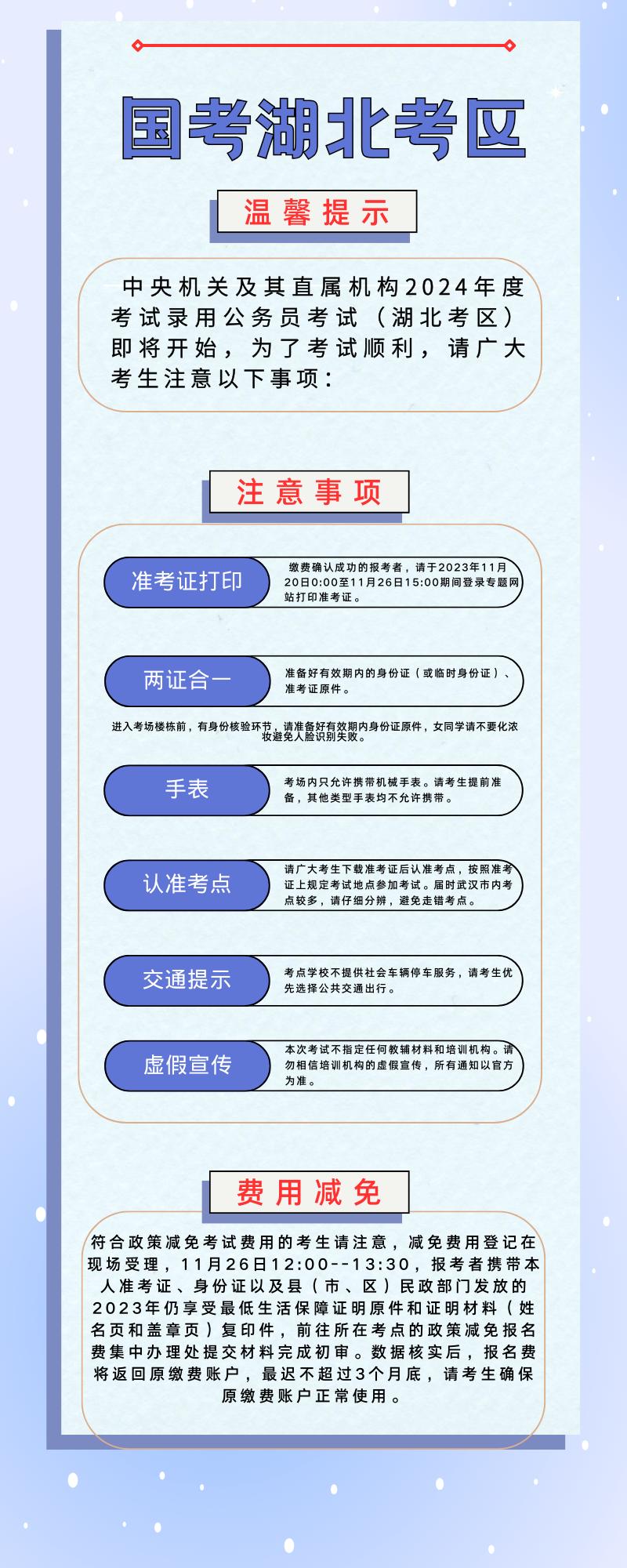 中央机关及其直属机构2024年度考试录用公务员笔试将于11月26日(本周日)开考。考生需在规定时间内到达考试地点,携带准考证、身份证等有效证件参加考试。26日上午09:00—11:00进行行政职业能力测验考试,下午14:00—17:00进行申论考试。