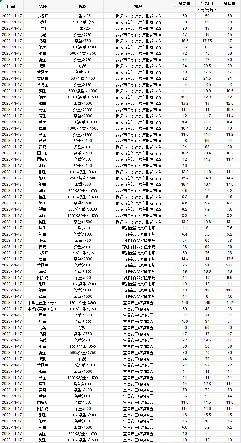 2023年11月17日 行情|湖北省主要水产品价格明细