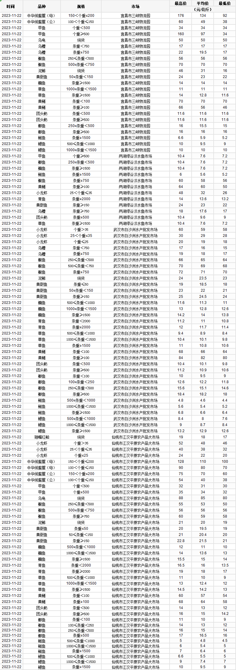 2023年11月22日 行情|湖北省主要水产品价格明细