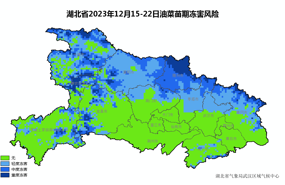 图1 湖北省2023年12月15-22日油菜苗期低温冻害风险
