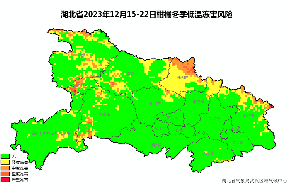 图2 湖北省2023年12月15-22日柑橘冬季低温冻害风险