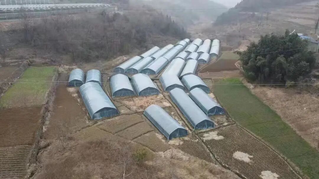 图为郧西县安家乡田坑村羊肚菌产业基地