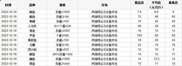 2023年12月19日 行情|湖北省主要水产品价格明细