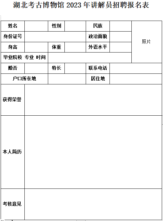 (1)《湖北考古博物馆2023年讲解员招聘报名表》一份