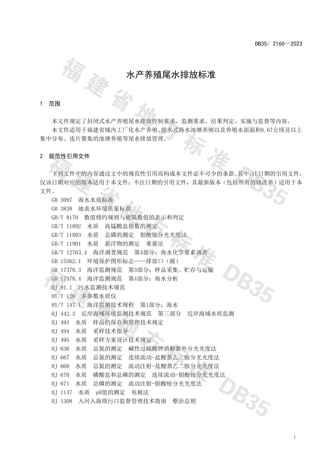 据悉,该标准规定了封闭式水产养殖尾水排放控制要求、监测要求、结果判定、实施与监督等内容,适用于福建省域内工厂化水产养殖、提水式海水池塘养殖以及养殖水面面积6.67公顷及以上集中分布、连片聚集的池塘养殖等尾水排放管理。以下为标准原文。