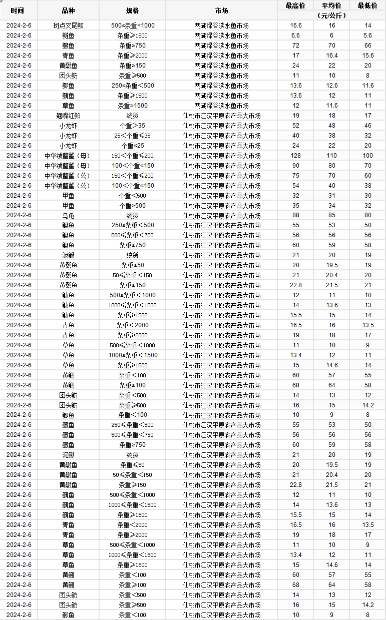 2024年2月6日 行情|湖北省主要水产品价格明细