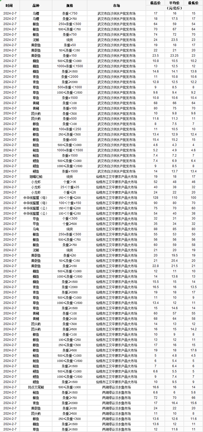 2024年2月7日 行情|湖北省主要水产品价格明细