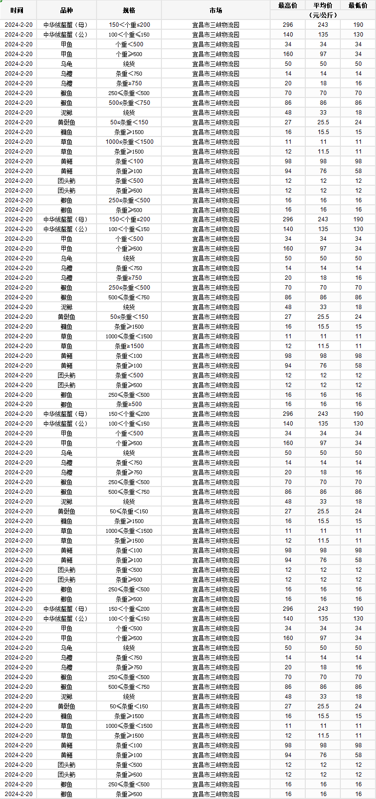 2024年2月20日 行情|湖北省主要水产品价格明细