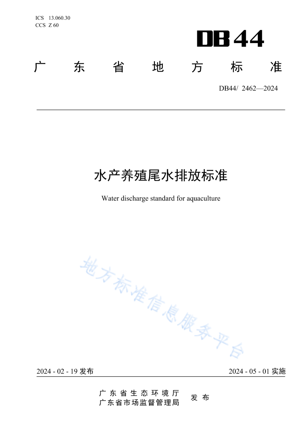 经广东省人民政府同意,广东省市场监督管理局、广东省生态环境厅近日联合发布了强制性地方标准《水产养殖尾水排放标准》,将于2024年5月1日起实施。《标准》全文如下。