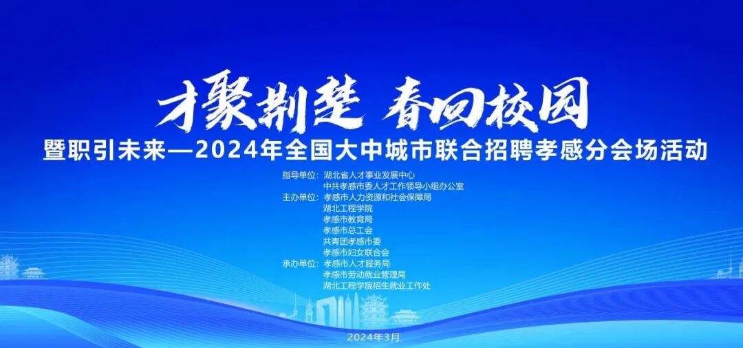 3月23日,2024年“才聚荆楚·春回校园”暨“职引未来”全国大中城市联合招聘孝感分会场活动将在湖北工程学院湛林体育馆举行,活动征集240多家优质企事业单位,提供招聘岗位6000多个,为广大在孝感求学的高校毕业生提供丰富的就业机会和一站式求职服务。