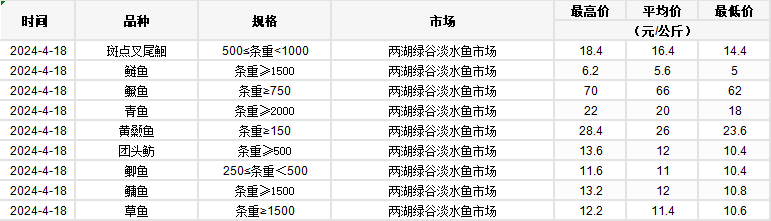 2024年4月18日 行情|湖北省主要水产品价格明细