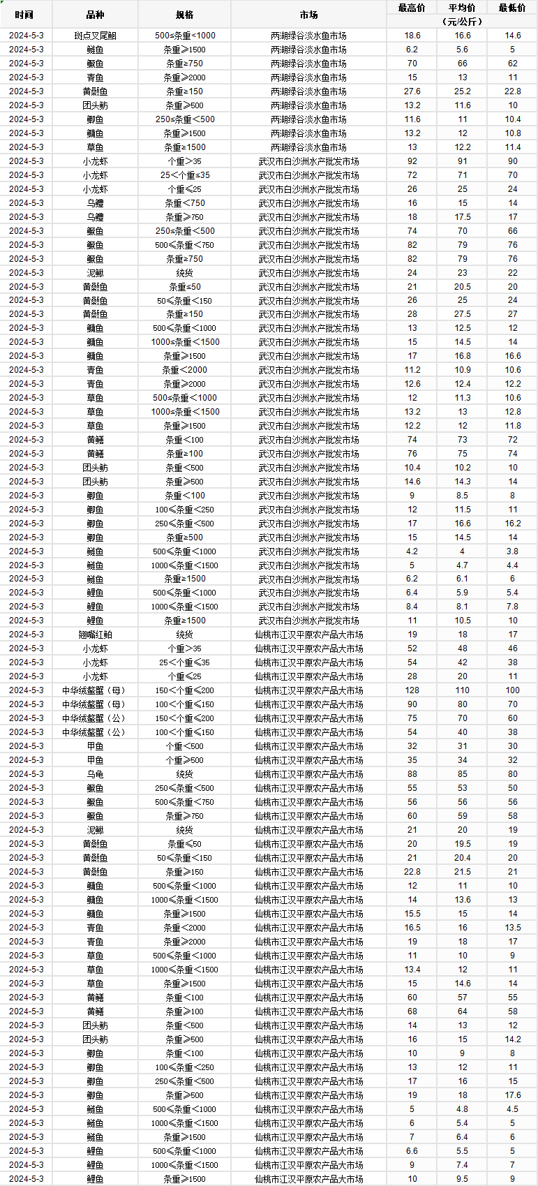 2024年5月3日 行情|湖北省主要水产品价格明细