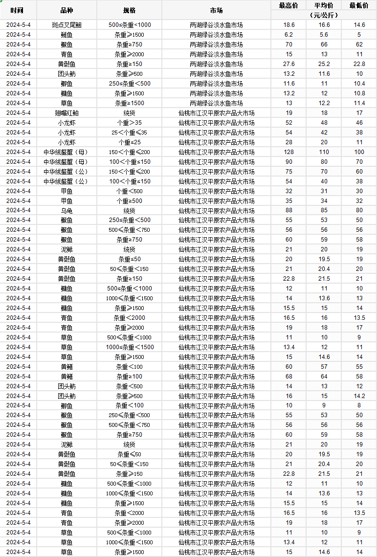 2024年5月4日 行情|湖北省主要水产品价格明细