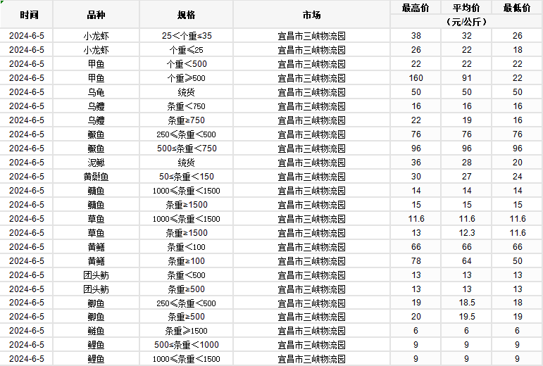 2024年6月5日 行情|湖北省主要水产品价格明细