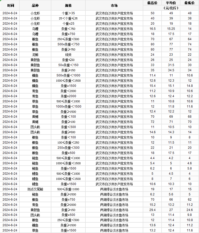 2024年6月24日 行情|湖北省主要水产品价格明细