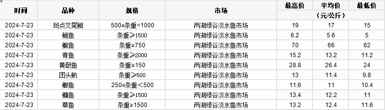 2024年7月23日 行情|湖北省主要水产品价格明细
