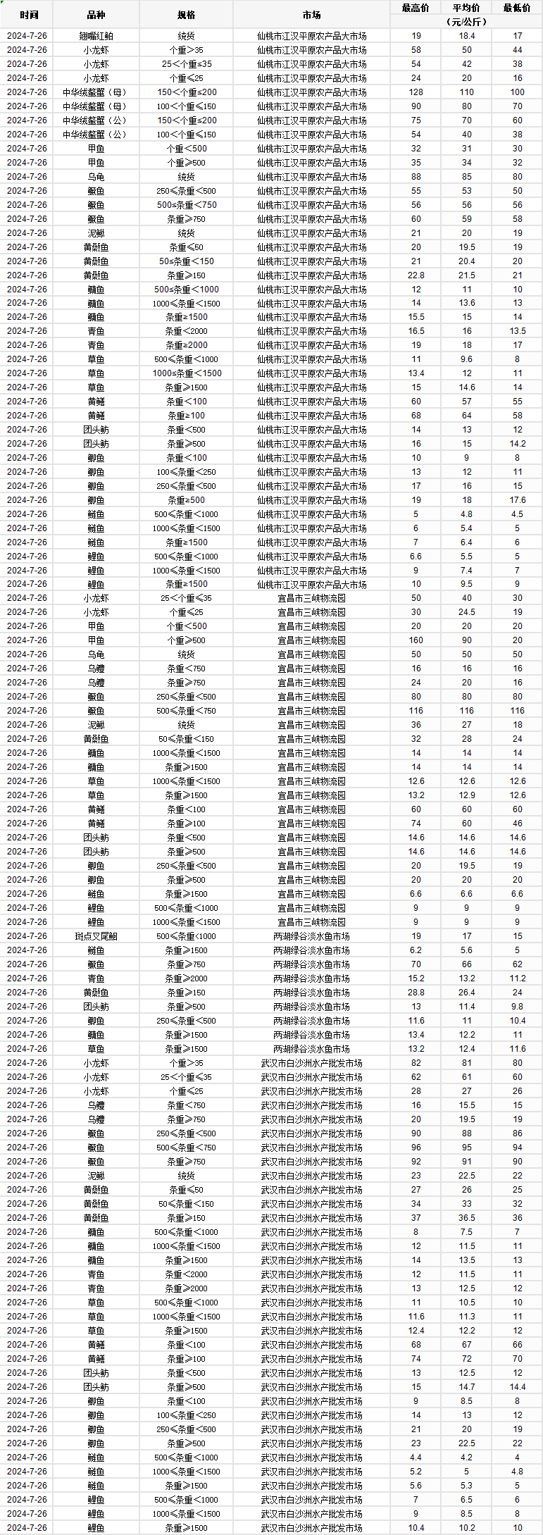 2024年7月26日 行情|湖北省主要水产品价格明细