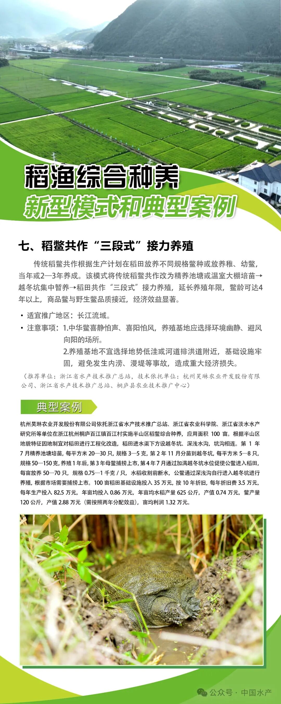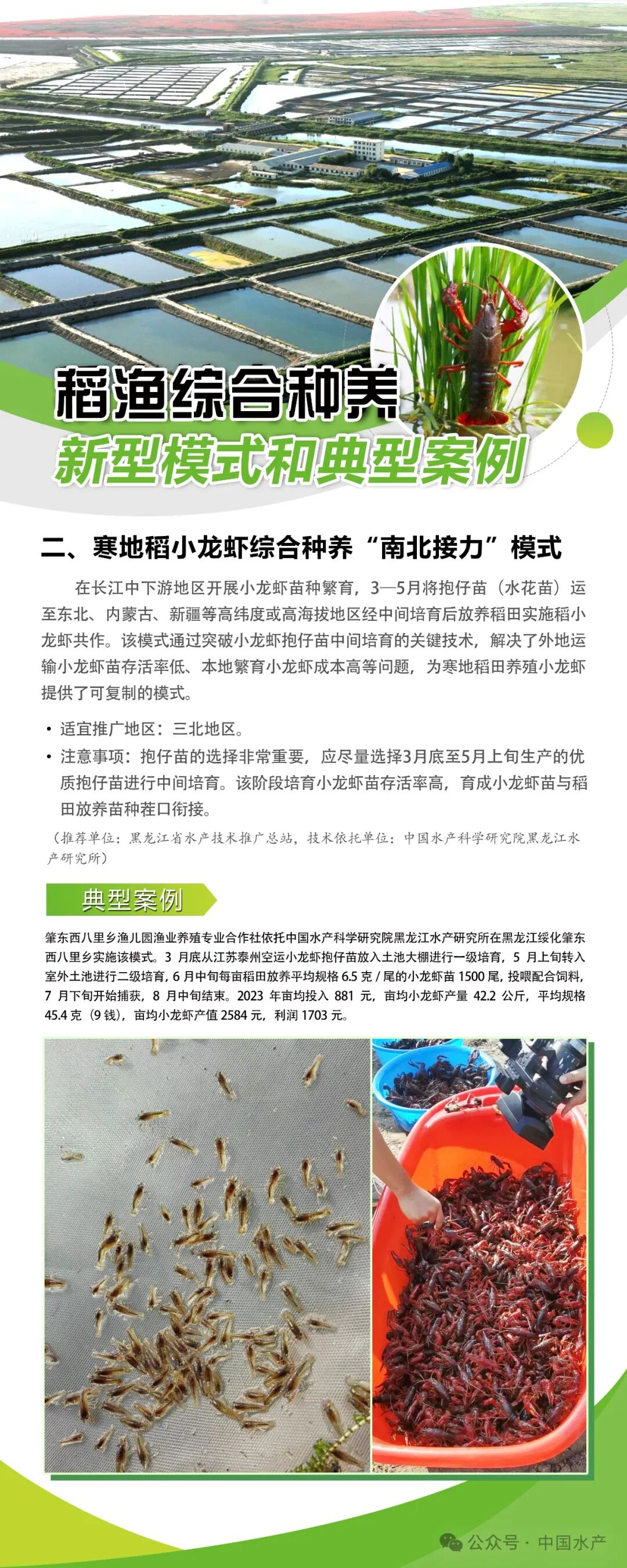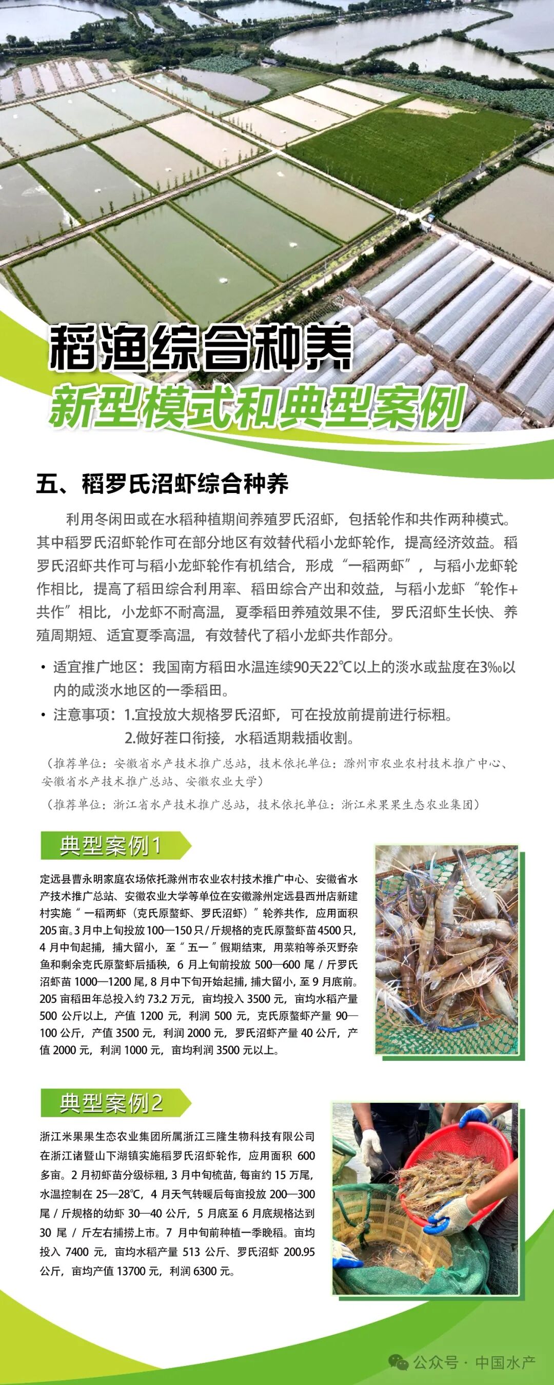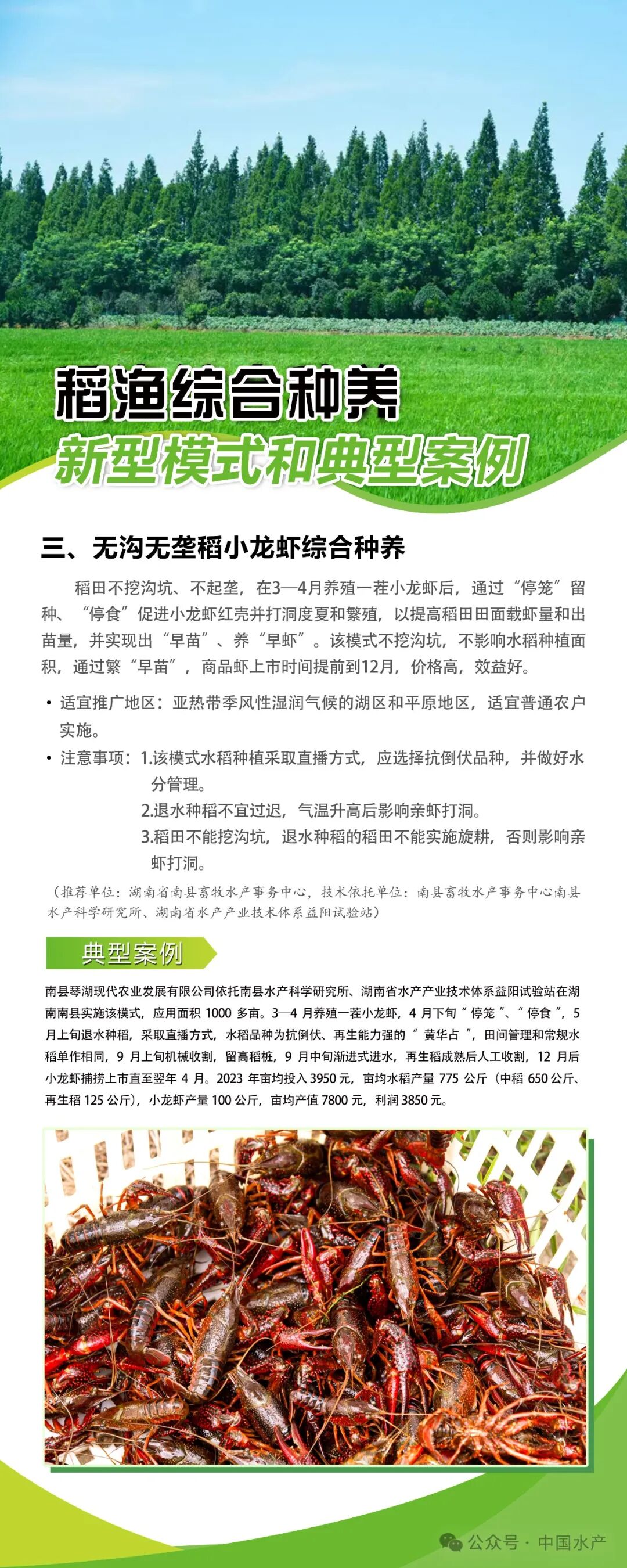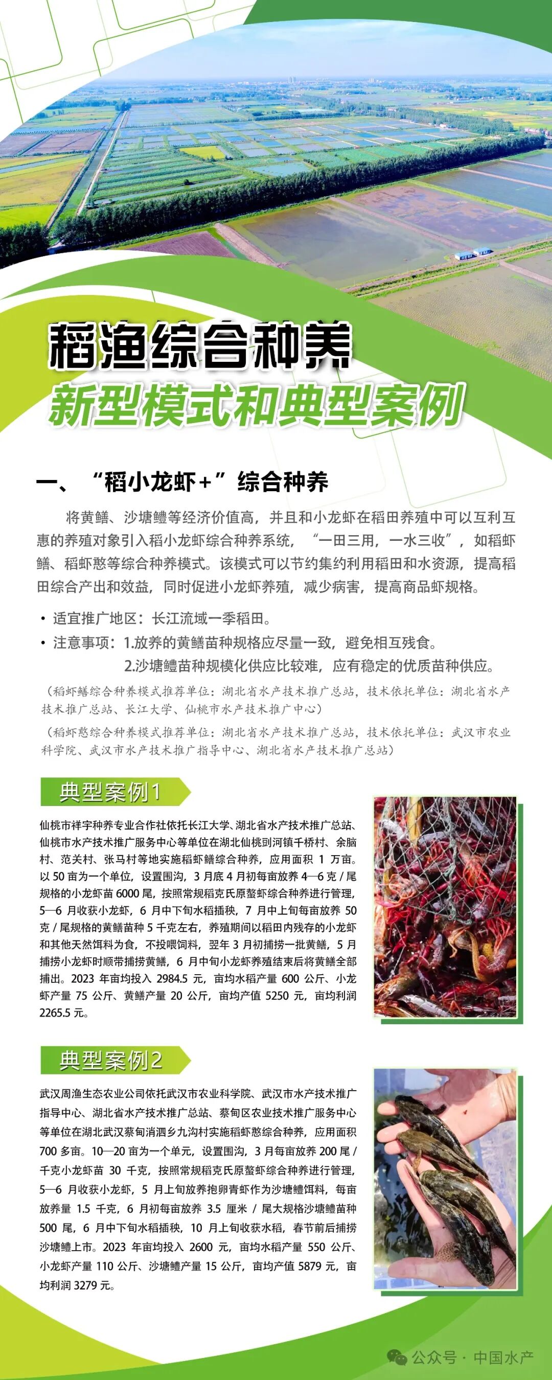 现将模式和案例材料刊出,供各地学习借鉴。同时,请各地注意应结合实际情况因地制宜开展稻渔综合种养生产,切忌简单照搬复制。