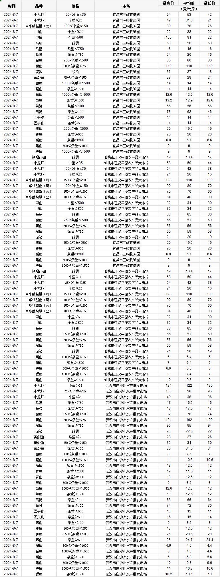 2024年8月7日 行情|湖北省主要水产品价格明细