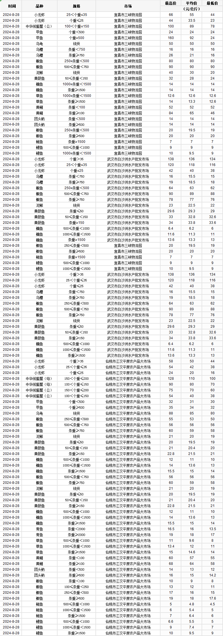 2024年8月28日 行情|湖北省主要水产品价格明细