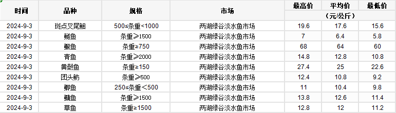 2024年9月3日 行情|湖北省主要水产品价格明细